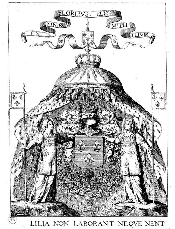 É comum a lembrança de que os nobres não trabalhavam, não podiam trabalhar. Existe até um verbo, “déroger”, que era usado no sentido de fazer perder o direito à nobreza aquele que se dedicasse às artes vis, mecânicas, manuais e ao comércio de varejo, entre outros possíveis atos desonrosos. A imagem que ilustra este post mostra o brasão dos Bourbons ao centro e nas bandeirolas dos dois anjos, com as famosas flores de lis. A frase em latim “Lilia non laborant neque nent” é uma citação de Mateus 6:28, na qual lemos o seguinte: “E, quanto ao vestuário, por que andais solícitos? Olhai para os lírios do campo, como eles crescem; não trabalham nem fiam”. Parece uma ironia. A passagem nos exorta a não procurar a fortuna material, a não colocar nossas necessidades mundanas à frente da busca da salvação da alma, a não buscar as riquezas, nem o acúmulo e até mesmo o que beber, comer ou vestir. Transposta para o brasão da família real, o conselho para que sigamos o exemplo das flores que não trabalham nem fiam fica parecendo uma provocação. O passado guerreiro e conquistador, podemos dizer o ethos “caçador”, de toda essa nobreza realmente via com muita reserva o trabalho repetitivo e disciplinado como meio de vida.